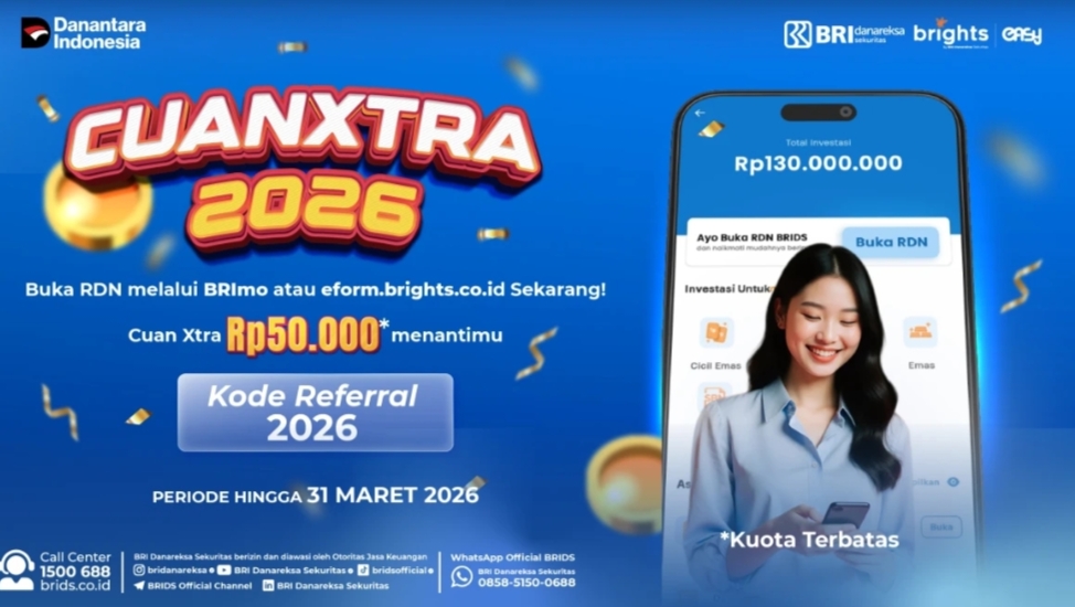 Foto: Program pembukaan rekening investasi ini menawarkan insentif hingga Rp50.000 untuk mendorong inklusi keuangan dan partisipasi pasar modal pada awal 2026. Jakarta, KJ-News.com (13/02/2026) – PT BRI Danareksa Sekuritas meluncurkan program promosi bertajuk CUAN XTRA 2026 sebagai upaya mendorong minat masyarakat membuka rekening investasi serta memperluas partisipasi investor ritel di pasar modal domestik.