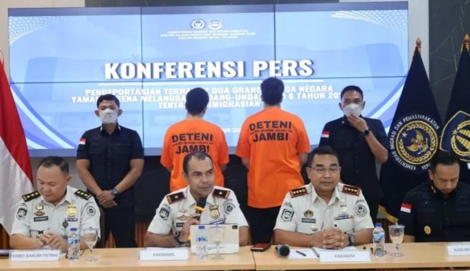 Jambi, KJ-News.com (19/02/2026) – Kantor Wilayah Direktorat Jenderal Imigrasi Provinsi Jambi bersama Kantor Imigrasi Kelas I TPI Jambi mendeportasi dua warga negara asing (WNA) asal Yaman berinisial FAM (27) dan AHM (24) setelah terbukti melakukan pelanggaran keimigrasian serius.
